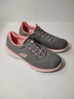 These shoes are in great condition with no rips or tears. One shoe has a small stain on the side. see pictures for details. Used with plenty of life left in them. This is a pair of Skechers Women's Summits running shoes in size 10. They are slip-on sneakers with a mesh fabric upper in gray and pink. The shoes feature a rubber outsole, breathable comfort, Skechers Memory Foam insole, and are suitable for all seasons. The style code is 12980W, and they are designed for casual wear and sports activities.