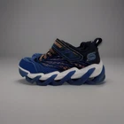 These Sketchers light-up shoes are perfect for any active boy! With a round toe shape and low top style, they are comfortable and easy to wear for any occasion, whether it's for travel, activewear, or casual outfits. The shoes feature a striped blue color with the Sketchers logo as an accent. The shoes are made with a synthetic upper material and lining, with a cushioned insole and moderate cushioning level. They also have arch support and an adjustable strap for added comfort. The outsole is made with rubber for added durability. These shoes are perfect for any activity, including gym and training, walking, school, cross training, dance, and running and jogging. They are available in size 11C and are vintage, but still in great condition.