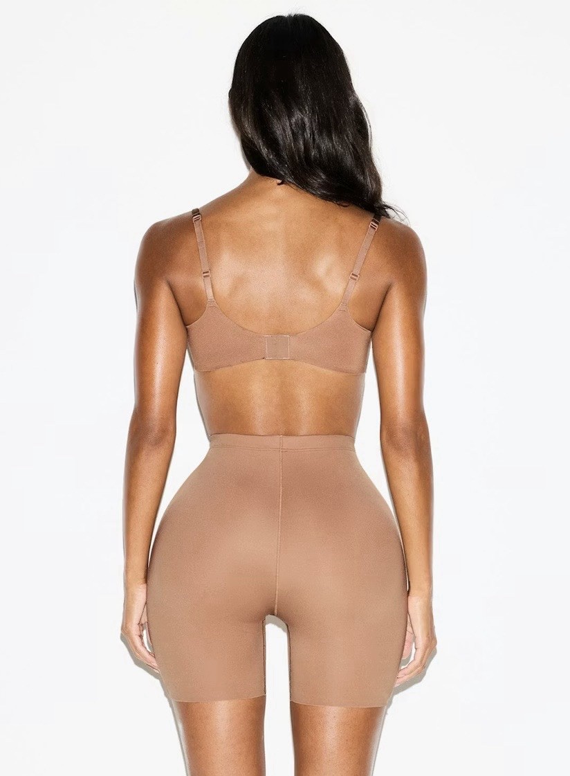 The Skims Body Butt & Hip Enhancing Mid Thigh Padded Short in Sienna is a firm compression shapewear designed for women. Made from Polyamide and Elastane, this shaping bottom features padded layers to enhance the buttocks and hips. With a compression area focused on the body, this mid-thigh length short is a stylish and functional addition to any wardrobe, providing a flattering fit with a comfortable feel.