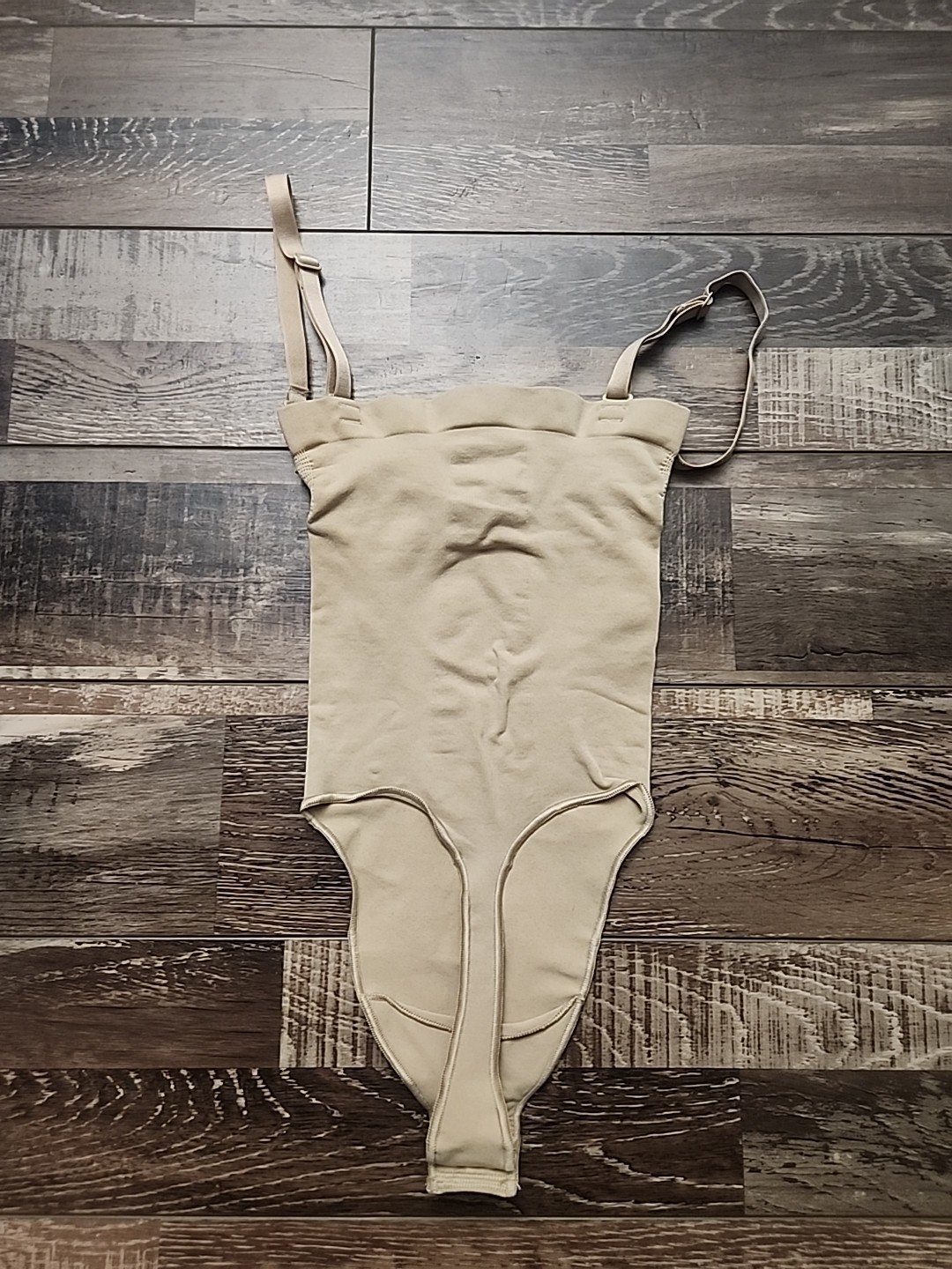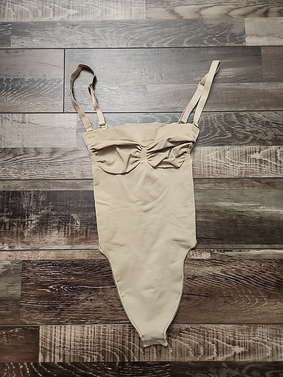 SKIMS Seamless Sculpt Plunge Shortie Bodysuit - Beige - Size XS With Straps