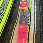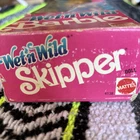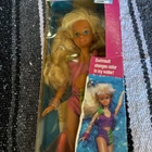 This is a vintage 1989 Skipper Barbie Doll manufactured by Mattel. The doll has blonde wavy hair and blue eyes. It comes with a swimsuit that changes color when wet. The doll is 11.5 inches tall and made of plastic. It is an original collector toy and is still in its original unopened packaging. The doll is part of the Barbie franchise and is a single unit sale.