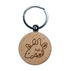 Sleepy Giraffe Head Engraved Wood Round Keychain Tag Charm
