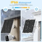 【New Upgraded 3-In-1 Port】Our solar panel for security camera has been upgraded with a 3-in-1 port cable. This camera solar panel works with DC 5V rechargeable battery cameras with Micro USB & USB-C & DC ports. Our solar panels for cameras are suitable for most cameras and have a wider range of fitment than the single port camera solar panels on the market. 【28% Ultra-High Conversion Efficiency & Uninterrupted Power Supply】Our solar panel for security camera is made of the highest grade ETFE substrate material paired with high efficiency mono-crystalline silicon, which allows the solar energy of this camera solar panel to reach a conversion rate of more than 28%. This security camera solar panel can efficiently and stably power your camera equipment, keep your camera working uninterruptedly for 365 days. 【Built-in 5V Regulator】We have upgraded and added a regulator to this camera solar panel, ensuring a stable output of current that does not change with the intensity of sunlight. With the help of the regulator in the solar panel for security camera, we can better protect the lifespan of your camera and allow it to work all year round. 【Upgraded Performance & Durable Material】This solar panel for security camera has a strong IP65 waterproof rating, which can work perfectly even in all kinds of bad weather such as rain, snow, thunderstorms and so on. With the upgraded professional housing material of this camera solar panel, which makes this camera solar panel more wear-resistant, durable and corrosion-resistant, and can continuously power the surveillance camera all day, this solar panel for security camera is perfect for outdoor use. 【Easy to Install & Adjustable Mount】Our solar panel charger for camera is easy and convenient to install, this solar panel security camera outdoor comes with 360°horizontal rotation and 90°vertical angle free adjustment to ensure maximum access to sunlight, and our solar panels for cameras comes with a 10FT long fast charging cable that allows you to easily connect the camera, giving you the flexibility to charge the camera indoors or outdoors. 【Packing List】1* 5W Solar Panel for Security Camera, 1* 360° Adjustable Wall Mounting Bracket, Micro USB & USB-C & DC Port 3-In-1 Charging Cable, 1* Screw Pouch, 1* User Manual.
