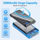 【Super Large Capacity】With 33800mAh premium Li-polymer battery-Wireless Solar Charger Power Bank. It can be recharged by via adapter and solar power.Super endurance, allow you get rid of the trouble of equipment battery running out. 【Outdoor Waterproof Wireless Power Bank】Equipped with a super bright LED flashlight, It can work continuously for up to 200 hours,This solar battery charger also has plus rugged ABS material and silicone,high elasticity and toughness,make it dustproof shockproof.Side compass design and one lanyard hole. With over 1500+ charging life cycles.Its a good choice for outdoor activity/Camping/wilderness trips/hikes/canyons/inclement weather/home emergencies. 【Compatible with Multiple Devices】Solar power bank is equipped with 15W Qi wireless fast charging,built-in 4 fast charging cables.compatible with all USB devices such as smartphones and tablets. NOTE: Use fast charging cable and adapter to achieve fast charging. 【High Performance】Solar powered battery charger has a built-in smart IC chip, which can accurately identify most mobile devices on the market and match the output power accordingly. The IC chip will also provide charging protection for the solar power banks, intelligently monitoring voltage and current. It can prevent your device from overcharging, overcurrent, overvoltage, short circuit, overheating and other potential hazards. For your device protection. 【Warm reminder】This solar charger passed UN38.3 and MSDS safety certification, can be safe to use. We also provide you with a complete after-sales service,Welcome to contact us anytime. Note: Solar charging is only an emergency backup solution, for normal use, please charge via data cable.power bank are made of high-quality materials, have a super large capacity, maybe a little heavy. 【notice】Before using the power bank for the first time,please give a full charge to it.