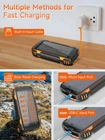 [6 Ports+ Wireless Charging]: Cell phone charger have 6 ports, 18W Type-c(support input/output), 18W mic-usb for input, 4 USB for output(USB1 18W. These 3 are all 15W), which means you can charge 6 devices at same time, Also 10W QI wireless charging function support all qi-enabled mobile devices [30,000 mAh Huge Capacity]: Our solar battery charger equipped with 30,000 mAh amazing battery, it’s enough to charge an phone 11 for 7.2 times, a Galaxy S10 for 6.6 times, an iPad mini5 for 4.5 times. even during hurricanes and unexpected power outages. It can automatically adjust the output to provide the appropriate current to ensure that your device is free from overcharge and short circuit. But the solar phone charger can't be brought on the plane. [ Dual Input Ports]: Solar charger power bank with micro input port and type-c input & output port(9V/3A quick charging input type c). Our solar charger's input current can reach 9V/2A, which is twice faster than other solar phone charger. At the same time, it supports solar energy input. It is very suitable for outside activities such as camping, and other emergency use. [4 Lighting Modes]: Solar battery pack built-in two 1W flashlight spotlights, single lumen 150, range 40 meters, four lighting modes: ① strong light; ②dim light; ③warning light; ④ SOS mode. Portable solar charger can be used as night light in the dark. It is very suitable for outdoor fanatics, and other emergency situations. [Outdoor-Specific Material]: Portable solar charger is made of durable materials, it has a very strong resistance to impact (1.2 meters drop) Test) is very suitable for outdoor use. The solar phone charger is equipped with a Carabiner, which you can hang on your bag while climbing the mountain and use the solar energy to charge the solar battery charger.