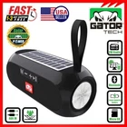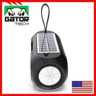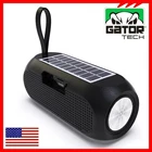 Gator Tech Solar Power Bluetooth 5.0 Wireless Portable Speaker Loud Volume & Crystal Clear Stereo Sound Rich Bass and IPX5 Pro Speaker Color: Black Specifications: Solar Powered: Solar Panel Bluetooth Version: 5.0 Distance: < 33 ft. Supports: FM Radio, Micro SD Card, USB Pen Drive, Aux 3.5mm Battery capacity: 1200mAh Loudspeaker Output: 5W x 2 = 10W Charging time: 2 - 3 hours Play time: 3 - 4 hours Charging parameters: 5V Support music format: mp3, wav, wma, FLAC, APE Speaker driver: Dual 45mm Frequency response: 120Hz-20KHz Signal to noise ratio: ≧90dB Distortion rate: <0.5% Material: ABS, Aluminum Mesh, PVC, Nylon, Silicone Color: Black Features: High Quality Crystal Clear Stereo Sound: Clarity sound, accurate mids and clear highs from dual precision stereo drivers. Bass output is enhanced by passive bass radiator. Louder Volume: 10+ watt power AMP pumps out more volume and plays music with no distortion, even at maximum volume . Perfect speaker for any room and ideal for outdoors. Incredible Bluetooth Range: Bluetooth 5.0 provides greater wireless range and a f aster Bluetooth connection . Connects easily with iPhone Samsung Smartphones, Cellphone, Laptop, computer, Mac, and all other Bluetooth devices. Playtime Up to 8 Hours: Play from morning till night. 1200mAh rechargeable battery can play up to 8 hours at 2/3 volume while solar power charging. AUX In Jack: Connect TVs and non-Bluetooth devices with 3.5mm Line-In cable. Built-in Microphone: For personal handsfree speakerphone calls from a Cellphone or iPhone. Light-weight and portable. TWS Function: Connects 2 Speakers of the same model for true stereo sounds . Long press "M" button after power on until the sound is emitted and the speaker is paired. Included in Package: 1 x Portable Bluetooth Speaker (Black) 1 x Micro USB Power Cable 1 x Aux 3.5mm Male to Male Cable 1 x Nylon Strap Carrying String 1 x User Manual We Offer The Lowest Prices On eBay for OPTIMUM Quality Tech + Free Shipping On All USA Orders! BUY 4 OR MORE ITEMS AND GET FREE U.S. PRIORITY MAIL SHIPPING ALL ORDERS ARE SHIPPED OUT WITHIN 1 TO 8 HOURS! Ultra Fast - FREE Shipping Worldwide Shipping From USA to All USA International Shipping No Waiting 3 to 4 Weeks Strong-Rugged-Durable Heavy Duty Bluetooth Speakers and Cables CLICK ON OUR eBay STORE