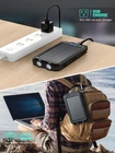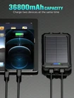 Power bank has 36800mAh large cell capacity. The use of high-density lithium polymer cells makes it more compact and has a larger capacity. A high-quality, high-density battery can support thousands of charge cycles. Power bank is equipped with two super bright LED headlight flashlights. Long pressing the power button for 3-4 seconds,flashlight turn on, long pressing again, flashlight turn off. This is a very useful extra function whether you are experiencing a power outage or outdoors. In addition, the power bank also has a built-in compass, which has been precisely corrected before , so that you will no longer get lost in outdoor activities. The Solar charger power bank is made of good silicone, high-strength ABS and PC materials, with a protective cover attached to the outside of the charging/discharging port, which is waterproof, dust-proof, and drop-proof, very durable. It also comes with a carabiner that you can attach to your backpack while hiking and charge this power bank with solar energy. Solar charger is mainly charged via USB, but can also be charged via the built-in solar panel. Solar charging is affected by the instability of sunshine intensity and duration. The battery capacity of the product is very large, so the charging will be very slow and should be Solar charging used as an emergency function . For daily charging, please use a charger with a power above 5V2A to charge the device. Solar power bank has two 5V3.1A high-speed fast charging USB output interfaces, which is 50% faster than the old 5V2A output interface. Able to fully charge your mobile device more efficiently. The built-in intelligent IC chip can automatically identify the charging product and convert it into the corresponding current and voltage. It is compatible most of electronic products and equipment on the market.