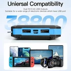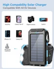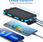 ☀️High-Capacity solar power bank: portable charger with 38800mAh high-capacity premium polymer battery.Power bank It has passed certifications like UL, CE, FCC, RoHS, and UN38.3. However, a powerful safety system provides temperature protection, over-voltage protection, over-current protection, short-circuit protection, etc. It can stabilize the equipment and ensure its safety in use. ☀️fast charging & Wide Compatibility: This Solar Charger Power Bank has built-in 3 Outputs & 2 Input ports(USB C input/output, Micro USB input, USB A&B output ), It allows charging 3 Devices at the same time. Solar phone chargers are compatible with most devices on the market such as iPhone, iPad, Samsung, HTC, LG, and other Android phones. ☀️Multi-Functional LED Flashlight: The solar charger has a built-in three modes LED flashlight (Steady-SOS-Strobe ), and lighting time can last up to 100+ hours when fully charged. Whether it is daily life, travel, hurricane prep, outdoor camping, cycling, fishing, hiking, kayaking, etc. This solar phone charger will all become part of your "traveling essentials bag". ☀️USB & Solar Charging Modes: The Solar charger is powered by a 5V/2.4A adapter or solar. However, with a small panel size, and a power bank large capacity the charging speed is subject to sunlight intensity and panel conversion rate, so it may take a long time to charge the battery bank using the solar panels. The primary means of charging the battery pack is via USB charging, solar charging is for emergency backup use only. ☀️Outdoor Portable Design: This solar USB charger comes with a carabiner so that the solar-powered charger easily hangs on a backpack for camping, hiking, traveling, cycling, fishing, beaches, etc.What You Get:1* 38800 mAh Solar Power Bank, 1*USB Cable, 1*Carabiner,1* Users Manual, 24-hour friendly customer service.