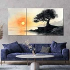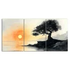 Solitary Tree Sunset Silhouette 3 Pcs Wall Art Unframed Modern Home