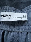Fabric Type: Canvas Size Type: Regular Pattern: Solid Vintage: No Occasion: Casual, Travel Style: Cargo Country/Region of Manufacture: Unknown Theme: Outdoor, Southwestern Personalize: No Brand: Sonoma Waist Size: 29 in Character: Stretch Handmade: No Size: 29 Department: Men Pocket Type: Cargo Pocket Features: Easy Care, Elastic Waist, Moisture Wicking, Pockets, Quick Dry, Stretch, Comfort waistband Front Type: Flat Front Material: Polyester Fit: Regular Inseam: 9 in Closure: Zip Color: Blue Fabric Wash: Dark