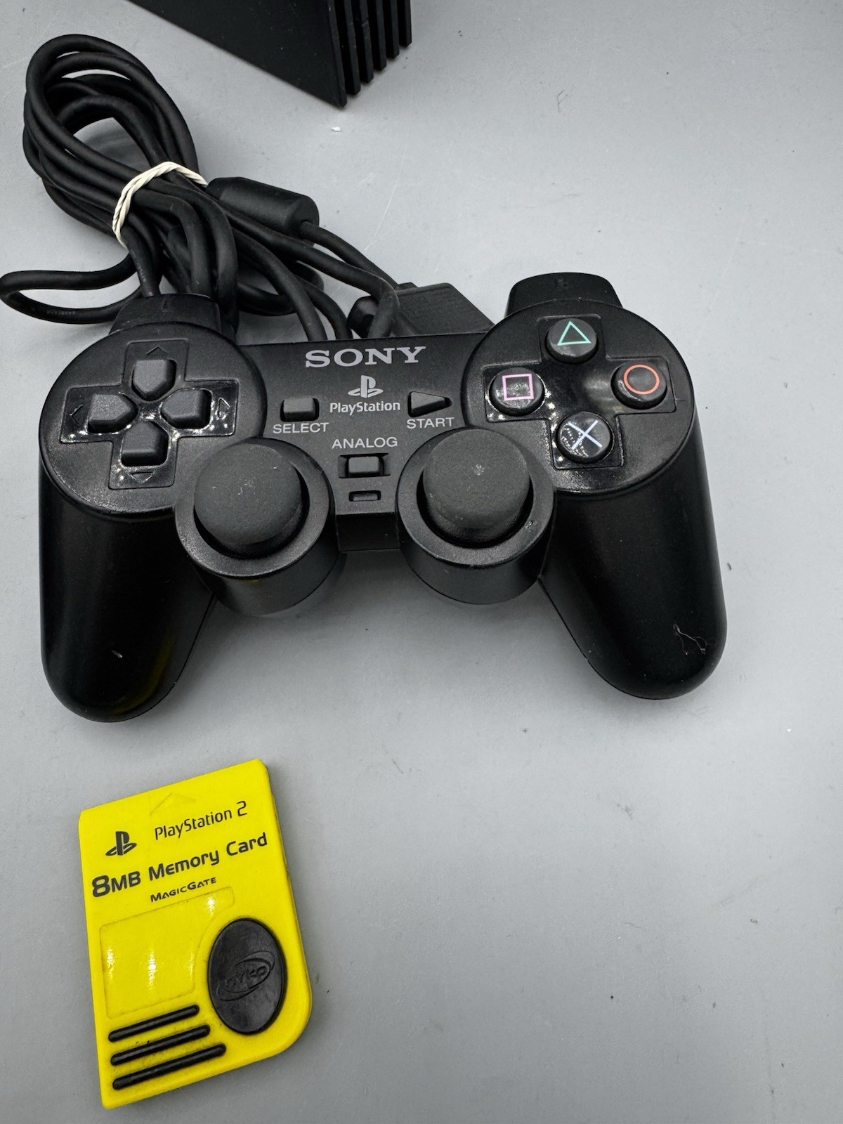 Play station 2 FAT SCPH-35001. System is tested and working, I ran both formats of ps1 and ps2 games. The disc drive was tested and occasionally was slow to open. It most likely will need a new drive belt in the future. What else is included: 2 authentic, working and fully tested dual shock two controllers in very good cosmetic condition. Power supply cable Authentic yellow memory card Authentic AV cable. The system itself does have some cosmetic flaws nothing critical, but it does have surface scratches, scuffs and other markings. Please refer to all the images and if you have any other questions, please do not hesitate to reach out. Thanks for viewing!