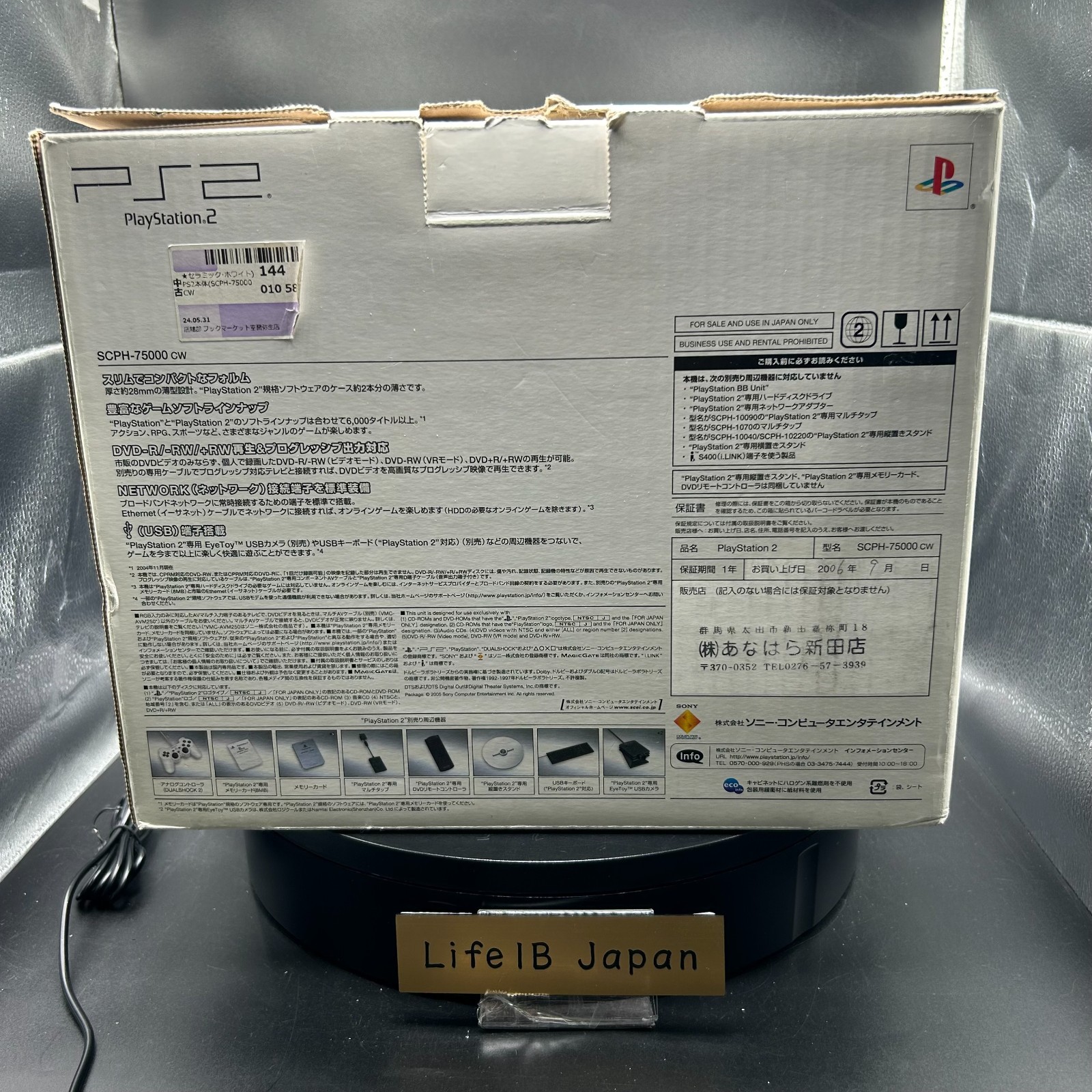 Sony PlayStation 2 PS2 Slim SCPH-75000 CW Ceramic White Console System Description Condition: Used Language: Japanese This is the Japanese version. This is the Japanese version, so please make sure it is compatible with the product in your country before purchasing. If it is region locked, please unlock it yourself. The Sony PlayStation 2 Slim SCPH-75000 CW Ceramic White Console System is a sleek and compact version of the iconic PS2, offering a refined design and enhanced functionality. This limited-edition Ceramic White model is highly sought after by collectors and gaming enthusiasts. Experience an extensive library of legendary PlayStation 2 games with smooth performance and stylish aesthetics. Product Details: Brand: Sony Model: PlayStation 2 Slim (SCPH-75000 CW) Color: Ceramic White Power Supply: 100V (Requires a voltage converter for regions with different voltage) Dimensions: Approx. 230mm × 28mm × 152mm (W × H × D) Weight: Approx. 900g Media Compatibility: PlayStation 2 discs, PlayStation 1 discs, and DVD playback Connectivity: AV Multi Out, Digital Optical Out, Ethernet (Broadband Adapter required for online play) Controller Ports: 2 (Compatible with DualShock 2 controllers) Memory Card Slots: 2 (Supports PS2 memory cards) Features: Slim and lightweight design for easy portability and space-saving storage. Backward compatibility with original PlayStation 1 games. DVD playback functionality for multimedia entertainment. Supports a vast selection of PlayStation 2 games, including exclusive titles. Stylish Ceramic White finish, a rare color variant exclusive to Japan. This Sony PlayStation 2 Slim SCPH-75000 CW is perfect for those looking to relive classic gaming moments or add a unique console to their collection. Shipping We will send the item by FedEx, DHL, SpeedPAK, or Japan Post. We always send the item with a tracking number, So please place an order without any concern on delivery. You can always track the delivery status. Delivery date: 5-10 business days to US(FedEx and DHL), 8-12 days to US(SpeedPAK), 10-20 days to US(Japan Post). Delivered to all countries within 5 -20business days. Shipping is only available to the address registered in eBay. If you want us to send another address, please change your address on eBay and then place an order. Shipping is available from Monday to Friday. Weekends are not available because freight companies are closed. ?Delivery may be delayed due to the weather, customs clearance, and conditions of the destination country. The delivery method may change depending on the country. International Buyers - Please Note: Import duties, taxes, and charges are not included in the item price or shipping cost. These charges are the buyer's responsibility. Please check with your country's customs office to determine what these additional costs will be prior to bidding or buying. Thank you for your understanding.