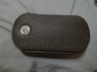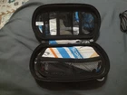 Black PSP 2001 with Score case, charger, 2 GB memory stick, and God of War Chains of Olympus.
