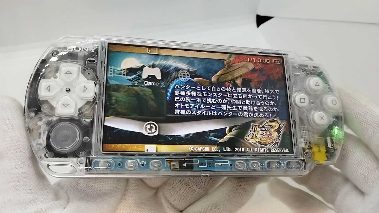 ・PSP body (PSP-3000 transparent color) ·battery ・Memory stick ・UMD software 1 Software can be changed if desired ・Set of SONY genuine charging adapter. ・Exterior new replacement ・New buttons replacement ・Base alcohol cleaning, air cleaning ・UMD reading maintenance (lens cleaning, lubricating oil application) *You can play games comfortably with the PSP, which has been reborn not only on the exterior but also on the inside. Operation has been confirmed. All buttons are also responsive. Drive confirmed. There is little deterioration and no expansion. There is no problem with charging with an adapter. Regarding customization