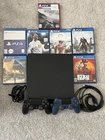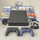 The Sony PlayStation 4 Slim is a home console with a 1TB storage capacity. It has a sleek black color and is region-free. The console has HDMI and USB-A connectivity options. It comes with Blu-Ray compatibility, Wi-Fi capability, and internet browsing features. The console has a 1080p Full HD resolution.