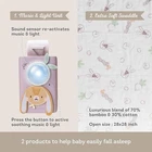 Return Policy Fast Delivery Trusted seller Soothing Set with Cry Activated Sensor, Baby Soothing Sound Machine, Portable Sound Machine, and Premium Bamboo-Cotton Baby Swaddle Product Description Cry-Activated Sensor - This baby soothing sounds machine is equipped with a cry-activated sensor that reactivates music and light when your baby cries or makes noise, providing immediate comfort and helping them drift back to sleep. With standby mode starting after 30 minutes of soothing sounds. Soothing melodies such as water stream, shooting, and rain white noises, accompanied by a soft light, each playing for 10 minutes to help your baby peacefully drift off to sleep. Perfect Newborn Collection - Our Soothing Bunny Set, consists of a cry activated sensor unit and a premium quality baby swaddle crafted from a luxurious blend of 70% bamboo and 30% cotton, offers a comforting and calming experience for your baby, especially at bedtime. It crafts with the utmost care, our baby swaddle is gentle on your baby's delicate skin, providing a cozy and snug, keeping your baby comfortable and cozy all night long. Soft Light Feature - Accompanying the soothing sounds is a soft light that can help soothe and calm your baby, promoting relaxation and better sleep quality. ENHANCES SENSORY DEVELOPMENT - The Soothing Bunny Set offers a range of soothing melodies such as water stream, shushing, and rain white noises, which can help stimulate your baby's senses and promote sensory development. The soft light that accompanies the melodies can also help soothe and calm your baby, promoting relaxation. Premium Quality Baby Swaddle - The set includes a luxurious baby swaddle made of 70% bamboo and 30% cotton, designed to provide a cozy and snug fit that makes your baby feel safe and secure. SOFT & COMFORTABLE our swaddle is gentle on your baby's delicate skin, providing a cozy and snug fit to help your little one sleep better without being overheating. Machine washable and fade resistant. Open size : 28x28 inch Portable and Easy to Use - This baby calming device is perfect for travel or on-the-go. Its compact size makes it easy to carry around, ensuring your baby can have a peaceful sleep anyw. It's also incredibly easy to use, just activate the cry sensor and let the machine do the rest, providing your baby with soothing sounds and light. Ideal for baby essentials and must-haves, this portable sound machine baby travel is a great addition to your baby gear. Baterries: 3 AA (not included) Shipping Returns Payment Shipping Shipping is FREE to all addresses other than APO/PO boxes in the lower 48 states. All our stock ships from US-based warehouses. Shipped via USPS or UPS (depending on location and package weight) Unless stated otherwise, all orders will ship within 24-72 hours of your payment being processed. Check our feedback to see the great reviews of FAST shipping we offer. Returns Seller does not accept returns Payment We currently accept payment via eBay managed payments only. Once payment is cleared, we will dispatch your shipment within 1-3 business days. Please refer to the "Shipping" tab for more information regarding shipping speed to your destination.