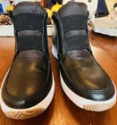 Elevate your everyday style with the Sorel Kinetic High Top Sneakers, a harmonious blend of fashion and function. Designed with a sleek black leather upper and a versatile solid pattern, these sneakers offer a sophisticated look that easily transitions from activewear to casual outings. The high-top shaft provides an ample fit, ensuring your feet stay comfortable and supported whether you're running errands or running a mile. Crafted for women who value both style and comfort, these sneakers feature a breathable interior and a foam insole that conforms to your foot's shape for all-day wear. The durable synthetic outsole is designed to handle various surfaces, making these shoes perfect for gym workouts, jogging, or even a leisurely walk in the park. With their convenient pull-on closure and standard shoe width, these Sorel Kinetics are a smart addition to any modern wardrobe.