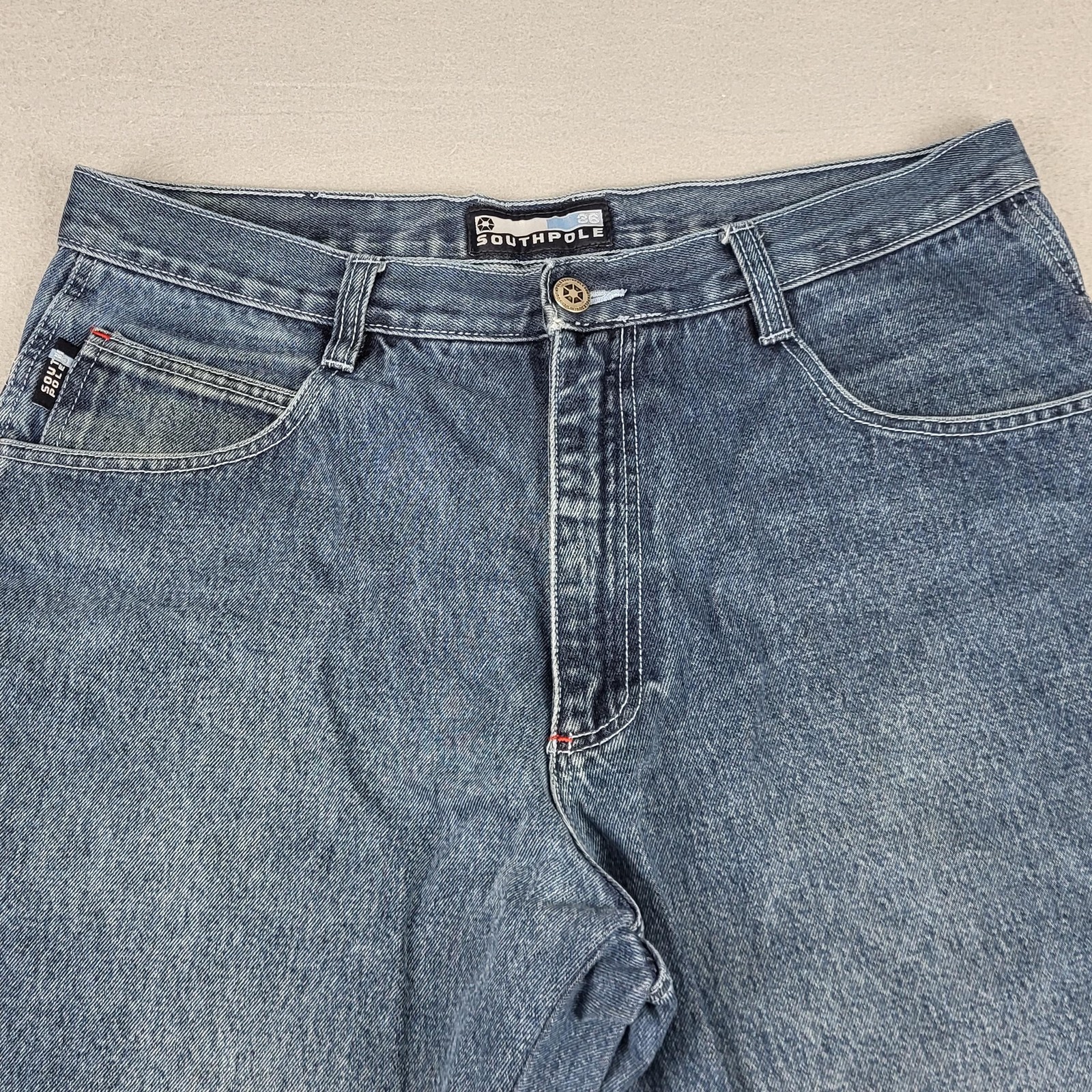 Southpole Denim Shorts Mens 36 Blue Jean Baggy Loose Fit Y2K Hip Hop Skate Style Condition: Good used condition with moderate wear. Minor spot of wear/scuffing on the lower left leg front (see closeup photo). Small hole in the left leg. Slight natural fading from wear and wash, presents well overall. 100% cotton denim, classic blue wash with lightly distressed details Roomy, loose fit with a longer inseam and baggy silhouette, popular for skate, hip hop, and street wear looks Tag size: 36 (see closeup image of waist tag) Features: Five pocket style, Southpole logo details at pocket and rear, button front with zip fly Made in Vietnam Approximate measurements taken flat: - Waist: 36 inches - Outseam (top waist to leg hem): 22 inches - Leg opening: 12.5 inches Please note the small area of wear on the lower left front leg (highlighted in photos). Classic 2000s Y2K Southpole jean shorts, ready to wear for skate, street, or casual looks. Disclaimer: Different sources of lighting can change your perspective on the color of the clothing Disclaimer: All clothing is measured in a resting position lying flat. All items have been cleaned per eBay standards & policies. We ship items daily via USPS Ground Advantage or Priority Mail with a tracking number for confirmation, so expect a quick delivery. We also offer free 30-day returns!! Please feel free to reach out anytime with any questions you may have. Thank you for shopping at Curiosity Corner RVA!!! Follow my store for greater discounts seller:kevredfor_0