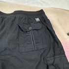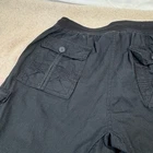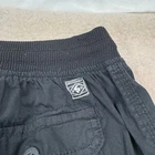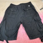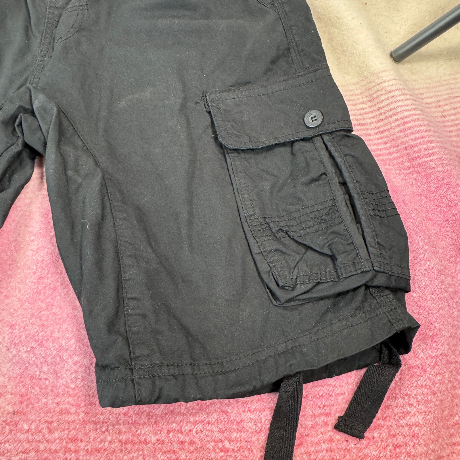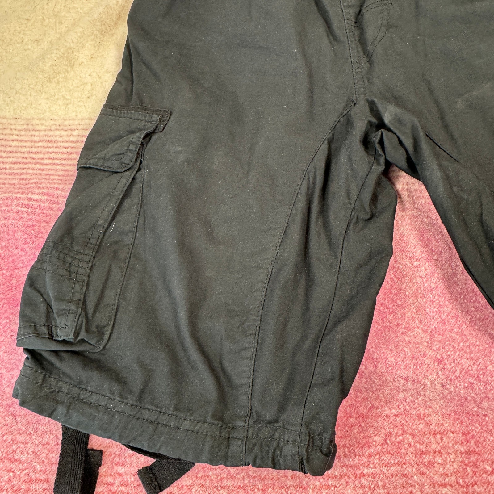 Brand: Southpole – Authentic Collection Size: L (Large) Color: Black Style: Cargo shorts Fit: Relaxed Closure: Elastic ribbed waistband + drawstring Pockets: 2 hand pockets, 2 side cargo flap pockets , 2 rear flap pockets Features: Adjustable hem ties , button-flap pockets, lightweight woven fabric Country/Region of Manufacture: China Material: Not listed on tag (feels like cotton blend) Measured (laying flat) Waist (relaxed): 21.75 in across (~43.5 in circ.) – drawstring tightens smaller Inseam: 15.75 in Outseam: 31 in (Measurements are approximate; compare to a similar pair you own.) Description Comfortable Southpole cargo shorts in classic black with a soft elastic waistband and drawstring. Plenty of storage with dual cargo pockets and rear button-flap pockets, plus adjustable ties at the hems. Great for everyday wear, travel, or work
