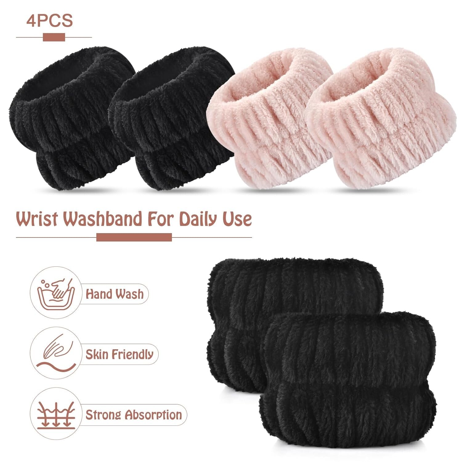Material suave: las muñequeras para lavarse la cara están hechas de terciopelo coral de alta calidad, que es suave y acogedor al tacto, ligero y duradero, y la correa de muñeca contiene una banda elástica retráctil para brindarle una experiencia de uso cómoda. Ampliamente utilizado: estas muñequeras para lavarse la cara se pueden aplicar en la mayoría de las ocasiones diarias, como lavarse la cara, maquillarse, hacer tareas del hogar, hacer yoga, hacer deportes y más, y absorberán agua y sudor. Efecto poderoso: toallas de muñeca para lavarse la cara Cuando te lavas la cara, el agua corre hasta los codos y moja tus mangas. Usar nuestra muñequera para lavarte la cara evita que el agua corra por tus brazos y encimeras y mantiene tu baño seco y fresco. Colores intensos: puede elegir diferentes colores de pulseras para lavarse la cara según sus propias preferencias, lo que le brindará a usted y a su familia un estado de ánimo agradable. Gran opción de regalo: las pulseras para lavarse la cara de colores brillantes y funciones prácticas se pueden usar como un regalo exquisito para su familia y amigos en aniversarios, cumpleaños, día de San Valentín, día de la madre, Navidad, día de Acción de Gracias, etc.