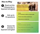 EXCITING Spanish CARD GAME OF QUESTIONS: Guess the animal on the game card by asking up to 10 questions! Is the animal large? Does it have 4 legs? Does it eat meat? Be the first player to win 7 Game Cards and claim victory! LEARN THROUGH PLAY: Ages 3 to 6 are paramount for ' Spanish language development! Foster Sightwords learning, Problem Solving, Decision Making, and Creative Thinking skills with our engaging Spanish learning card game! WHAT'S INCLUDED: Each game set features 50 Game Cards, 6 Clue cards, and a convenient, travel-friendly box for storage. PERFECT GIFT: An ideal bilingual gift for preschoolers with age-appropriate content! This game accommodates 2-6 players, takes just 5 minutes to learn, and ensures hours of endless fun! Excellent after-sales service: For any inquiries or assistance, feel free to reach out to our dedicated team.