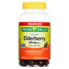 About this item Product details Experience the wellness benefits of elderberry with Spring Valley Non GMO Vegetarian Gummies, tailored for all adults looking to support their immune health. These elderberry supplements, in a 120-count value size, provide 50 mg of Black Elder extract per serving. Perfect for those who prefer a plant-based diet, these gummies are not only non-GMO but also delightful and easy to consume, making them ideal for both women and men aiming to boost their vitamin and supplement intake. Non-GMO and vegetarian-friendly formula Contains 50 mg of Black Elderberry extract per serving to support the immune system Designed for easy, enjoyable consumption with a pleasant taste Available in a value size with 120 chewable gummies per bottle Formulated without the use of animal products, suitable for vegetarians Elderberry supplement type targeting general wellness for all genders