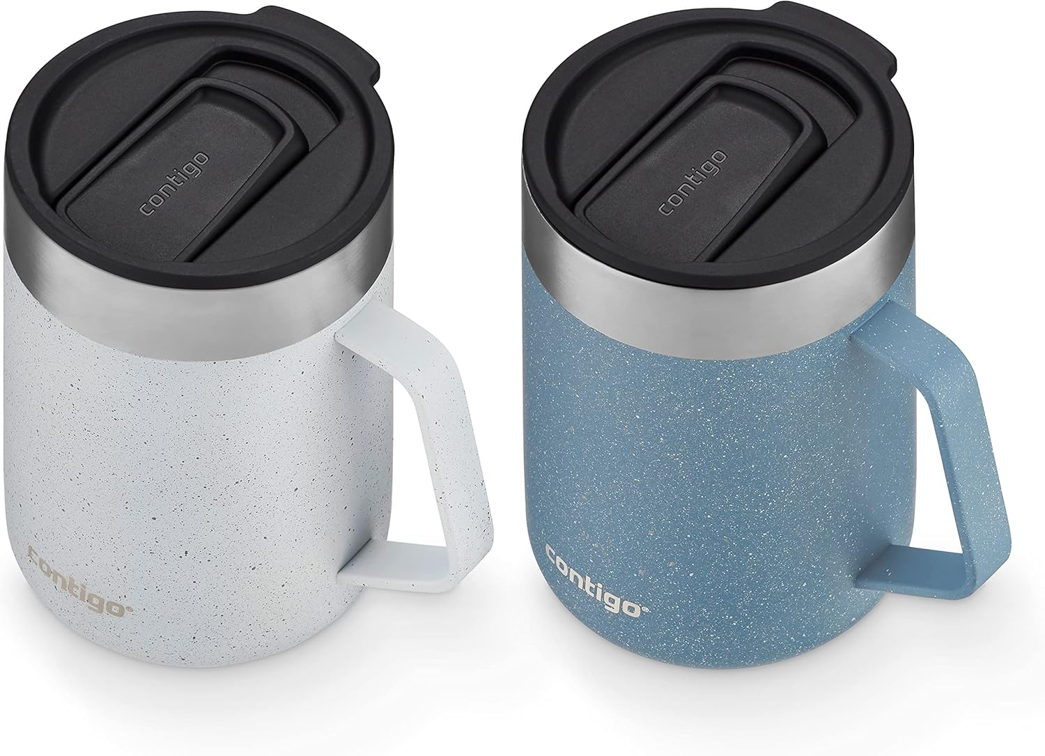 Store New Arrivals Add to Favorite View Feedback Contact Stainless Steel Vacuum-Insulated Mug with Handle and Splash-Proof Lid 2 Description Item model number 2169257 Included Components Mug, Lid Capacity 14 Fluid Ounces Age Range (Description) Adult Color Salt & Dark Ice Pattern Mug Material Stainless Steel Country of Origin China Item Weight 9.6 ounces Theme Travel Number of Items 2 Model Name Mug Recommended Uses For Product Travel Department Unisex-Adult Size 14oz (Pack of 2) Special Feature Dishwasher Safe Product Dimensions 8 x 5.75 x 3.75 inches Product Care Instructions Hand Wash Only Vacuum-Insulated: Stainless steel keeps beverages hot up to 5 hours and cold up to 15 hours Comfortable Handle: Sleek stainless steel handle offers easy drinking Splash-Proof Lid: Ensures beverages stay in the mug when closed Easy Care: Top-rack dishwasher-safe lid and body for easy cleaning Non-Slip Grip Base: Prevents slipping, clanking, or scratching on surfaces Safe Materials: Contains Stainless Steel (Iron, Chromium, Nickel, Manganese), Octamethylcyclotetrasiloxane Stylish Design: Sophisticated design with eye-catching colors fits under most single-serve brewers Enjoy your beverage at its optimal temperature for longer with the Contigo Streeterville Stainless Steel Travel Mug. This 14 oz. vacuum-insulated mug keeps drinks hot for up to 5 hours and cold for up to 15 hours, making it perfect for savoring your coffee at work or while taking a leisurely stroll around the neighborhood. The mug's sophisticated design in eye-catching metallic colors is not only stylish but also practical, with an easy-drinking comfortable handle, a splash-proof lid that keeps your beverage secure, and a non-slip grip base that protects surfaces. Both the lid and body are top-rack dishwasher-safe for easy cleaning, allowing for convenient everyday use. ABOUT US We offer the best prices around on high quality products. Our E-store includes media such as books, movies, music and games while offering electronics, toys, sporting apparel, clothing, tools, general home, garden items and more. SHIPPING We are always working hard to ensure your package arrives as soon as possible. Please understand that some factors like weather, high postal traffic, and the performance of shipping companies are outside of our control. RETURNS We offer a 30-Day Return Policy on items which you are not completely satisfied with. You have the option for a full-refund or an exchange of the item. PAYMENT We accept PayPal. CONTACT US This page content is yet to come Please ad us to your favorite seller and visit again later Thank You CUSTOMER SATISFACTION We try our very best to make sure every customer is completely satisfied. If there's a problem, message us! We're happy to help.