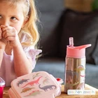 Our Stainless Steel Water Bottles hold up to 18 ounces of liquid, feature a flip top spout to prevent leaks when closed and include an easy-to-hold carrying loop. Top rack dishwasher safe, our stainless steel bottle is easy to keep clean! Each bottle comes with a second straw for maximum re-use. Add our Snack Box with Ice Pack, Lunch Pal or Classic Lunchbox for a perfect lunch set. MADE FOR LITTLE HANDS: Our Stainless Steel Water Bottles hold up to 18 ounces of liquid, feature a flip top spout to prevent leaks when closed and include a comfortable carry handle that is easy for little hands to hold. EASE OF REUSE: Each bottle comes with a second straw for maximum re-use. MATERIALS YOU CAN TRUST: BPA, phthalate and PVC free stainless steel water bottles DISHWASHER SAFE: Stainless Steel Water Bottles are easy to keep clean, our water bottles are dishwasher safe for easy cleaning. Our fun patterns for withstand the top rack in the dishwasher. CAPACITY and SIZE: 18 ounces, 7” height x 2.875 diameter
