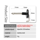 Product Description Stainless steel 3/8 interface Tripod Center Tripod Hook For Camera Tripod E Tripod Center Shaft 3/8 Screw Gravity Tripod Hook With Metal Spring Mount For Camera Tripod Accessories Specifications: Model: GC-01 Suitable for tripod: Tripod for 3/8 interface Application: Only applicable to central shaft pipeswith screw holes of approximately 9mm Product material: Stainless steel Threaded interface: 3/8 interface Product weight: 17g Features: 1. Standard UNC 3/8 threaded connection 2. Stainless steel hook 3. Compact and portable: carry outdoor photography with no pressure 4. When outdoor photography encounters strong winds, hanging heavy objects on the hook increases the weight of the tripod to achieve smooth shooting. Packaging includes: 1x Tripod Hook If you have any questions, please feel free to contact us via ebay. We usually respond within 24 hours. Payment Shipping Returns Contact Us We accept all verified payments from ebay. Orders will be shipped after receiving cleared payment. Payment due within 7 days after auction ends and for buy it now listings. We ship most of our orders within 24 hours, and may up to 48 hours for. If you want faster shipping way. Please contact us before making payment. Sometimes due to problems with our transportation company system, your shipping information may be delayed to update. We recommend that you try again after 3-4 days. If you still haven't checked the shipping information, you can contact us by ebay message. Always believe we can figure things out with communication, if it comes to return, the pacakge must be intact and the same as you receive. If you have any questions, please feel free to email our service specialists 24 Hours a Day, 7 Days a Week. We will reply you ASAP. Return/refund is accepted within 30 days after the buyer receives the item. NO exchange will be accepted after 30 days from the date when the item is received. Please contact us first before returning your product!!! If you have any questions, our Customer Service staffs welcome you to email us. We strive to answer all questions and resolve any problems as quickly as possible. You can contact us 7*24, we will reply at the first time, and we will surely solve your problems. Note: 1.We try our best to reply to your emails as soon as possible, however, due to high volume of daily incoming emails and time zone difference, we may not be able to reply your emails immediately. Please allow 1 business days for us to response. If you do not receive any reply from us, please check your email ensuring your mailbox has not reached full size. 2.Due to some ISP SPAM filter settings, you may not be able to receive our replies; if you have problems receiving our emails, you may need to use a different email account to contact us. 3.Please give us the opportunity to resolve any problem. We understand the concerns and frustrations you might have, and will try our best to resolve the issues. Please email us before leaving any negative feedback or open any dispute on PayPal. 4.We care about our valued customers, and will always try to help you. So if you have any problems, please e-mail us immediately. Payment We accept all verified payments from ebay. Orders will be shipped after receiving cleared payment. Payment due within 7 days after auction ends and for buy it now listings. Shipping We ship most of our orders within 24 hours, and may up to 48 hours for. If you want faster shipping way. Please contact us before making payment. Sometimes due to problems with our transportation company system, your shipping information may be delayed to update. We recommend that you try again after 3-4 days. If you still haven't checked the shipping information, you can contact us by ebay message. Returns Always believe we can figure things out with communication, if it comes to return, the pacakge must be intact and the same as you receive. If you have any questions, please feel free to email our service specialists 24 Hours a Day, 7 Days a Week. We will reply you ASAP. Return/refund is accepted within 30 days after the buyer receives the item. NO exchange will be accepted after 30 days from the date when the item is received. Please contact us first before returning your product!!! Contact Us If you have any questions, our Customer Service staffs welcome you to email us. We strive to answer all questions and resolve any problems as quickly as possible. You can contact us 7*24, we will reply at the first time, and we will surely solve your problems. Note: 1.We try our best to reply to your emails as soon as possible, however, due to high volume of daily incoming emails and time zone difference, we may not be able to reply your emails immediately. Please allow 1 business days for us to response. If you do not receive any reply from us, please check your email ensuring your mailbox has not reached full size. 2.Due to some ISP SPAM filter settings, you may not be able to receive our replies; if you have problems receiving our emails, you may need to use a different email account to contact us. 3.Please give us the opportunity to resolve any problem. We understand the concerns and frustrations you might have, and will try our best to resolve the issues. Please email us before leaving any negative feedback or open any dispute on PayPal. 4.We care about our valued customers, and will always try to help you. So if you have any problems, please e-mail us immediately. powered by