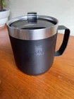 With this New (*see photos) Black Stanley Legendary Camp mug you will always have warm coffee no matter where you are. You don't have to think economically because this mug has room for 350 ml. (12oz) Because it is insulated your coffee will stay warm up to 1.5 hours. The lid fits nicely on top. And all parts of this mug are dishwasher proof! You can, however, also clean them by hand on the campsite! Dishwasher Safe BPA Free Type: Insulated Dimensions Weight: 300 grams Height: 10.3cm Contents: 350ml Diameter: 9mm Diameter including handle: 12cm Stanley: an icon For over a hundred years Stanley has been producing indestructible products and caters to those who love spending time on the road. Stanley uses stainless steel: a non-porous material that does not absorb strange flavours or odours. After all, you don't want your smoothie to taste like the coffee you had that morning! This mug is new, unused. With original tags on bottom. *Does not come with any original packaging. Please view all photos to confirm quality & condition. Thanks for looking!