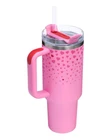 The Stanley Target Exclusive Valentine’s Day 2025 Sweet Hearts 40oz Tumbler is a branded tumbler featuring a Hearts pattern in Pink color. It is made of BPA-Free Plastic or Stainless Steel, suitable for both hot and cold beverages. This themed tumbler is decorated and insulated, with a handle for easy carrying. It is part of the Stanley Character Family and is a special edition release for Valentine's Day 2025.