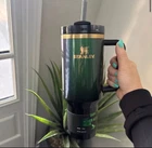 Introducing the Stanley x Target Elphaba 40OZ H2.0 FlowState Tumbler, a perfect addition to your collection. This three-piece tumbler set is made of stainless steel, steel, and BPA-free plastic, and comes with a drink-through lid, making it perfect for both hot and cold beverages. With a capacity of 1 liter, it keeps your drinks cold for up to 12 hours and hot for up to 8 hours. The tumbler is machine washable up to 85°F, and is suitable for recycling. It also features a handle, straw, and is insulated, making it perfect for any occasion. The tumbler is designed with a solid color pattern in green, and is adorned with the iconic Elphaba character from the popular cartoon series. This tumbler set is a must-have for sports enthusiasts, teens, boys, girls, and anyone who loves hot or cold beverages.