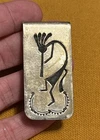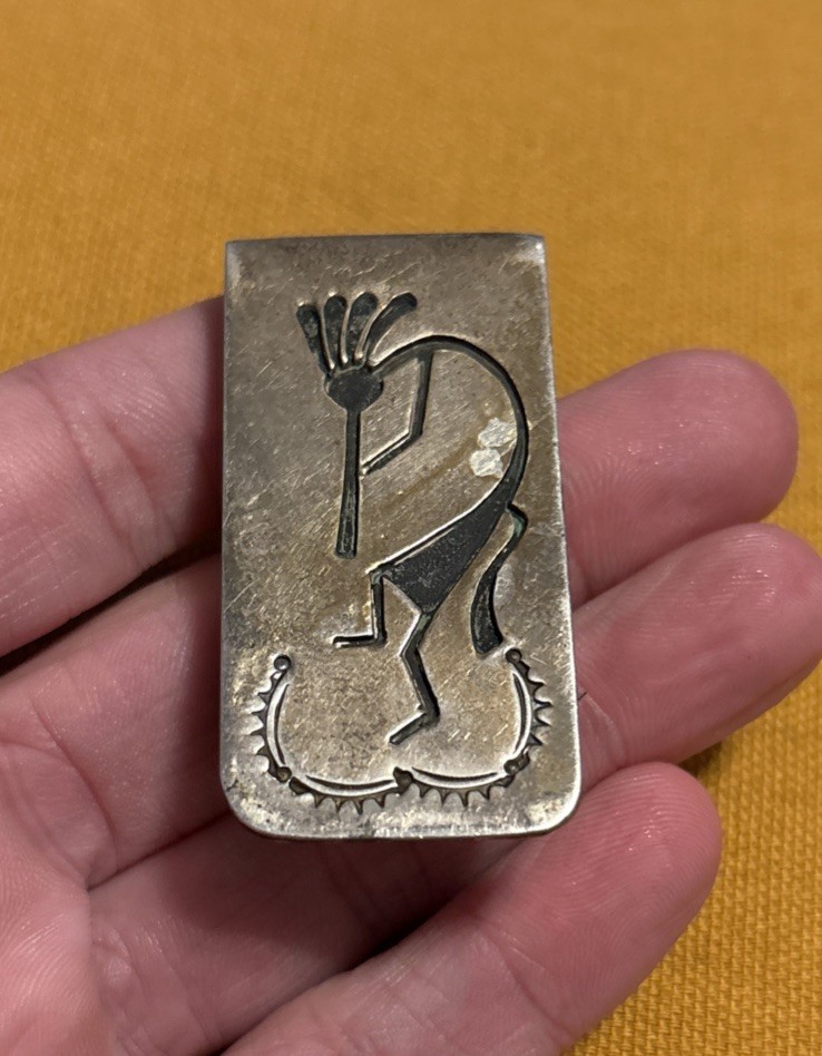 Sterling silver money clip with a Kokapelli design on the front. Nice and solid the item weighs 25 grams. The item is marked sterling as well as signed or marked with a HW or if it is upside down a MH. I’m sorry I wish I knew for sure. Please see all photos use as description and condition. Item is vintage and there is some light wear and tarnish. Please ask any questions prior to bidding. Yes I will combine shipping with other items. What you see is exactly what you will receive. Please leave feedback once you receive the item. THANK YOU