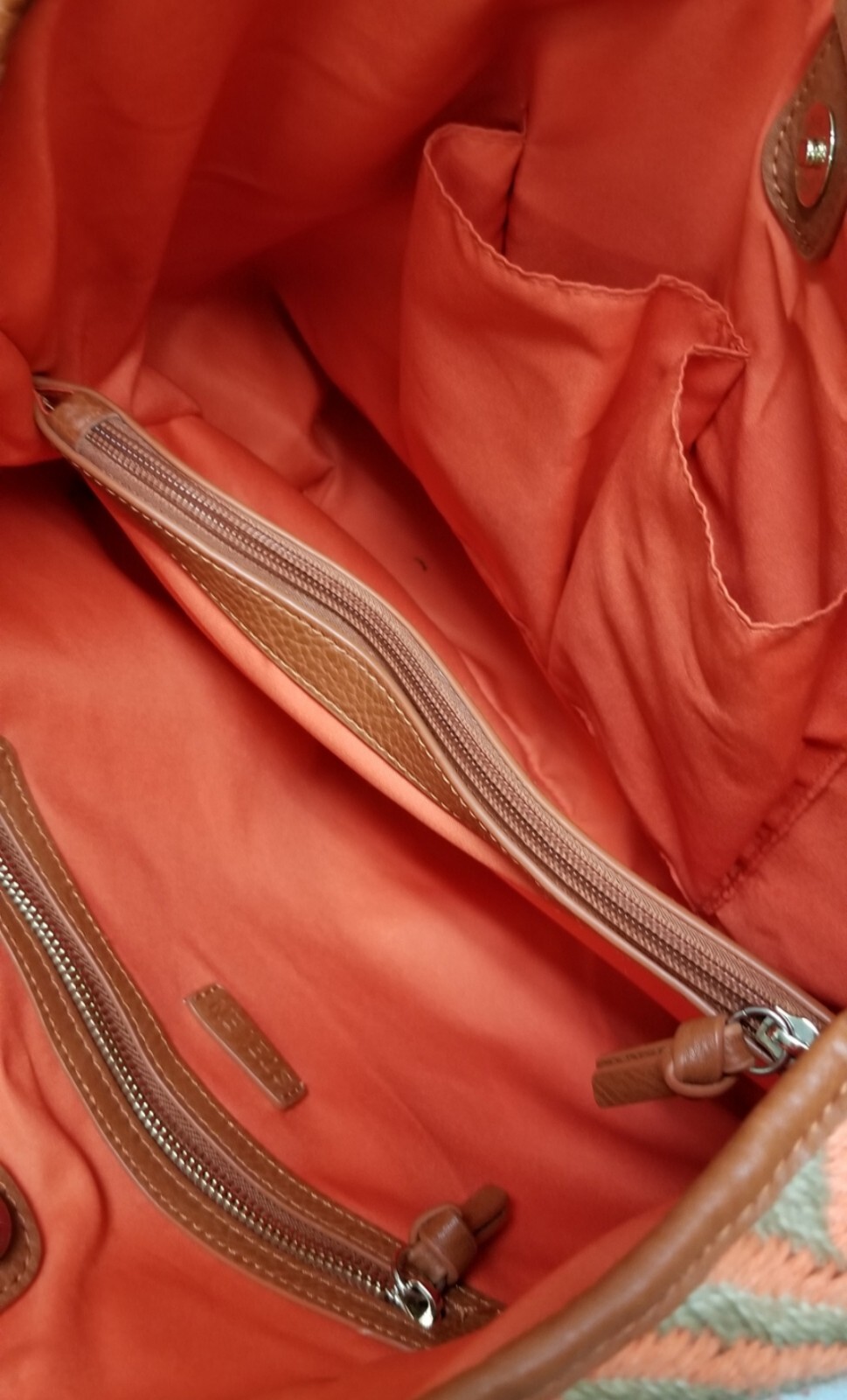 Please note item number when placing order thank you. #1 Steven large orange woven bag width 18"x height 14"x depth 5"x strap drop 11"x strap length 21" good condition. #2 LuLu denim fabric distressed embellished multi pocket shoulder bag adjustable strap width 16"x height 14"x shoulder drop 10"x depth 4"x strap length 20"adj good condition.