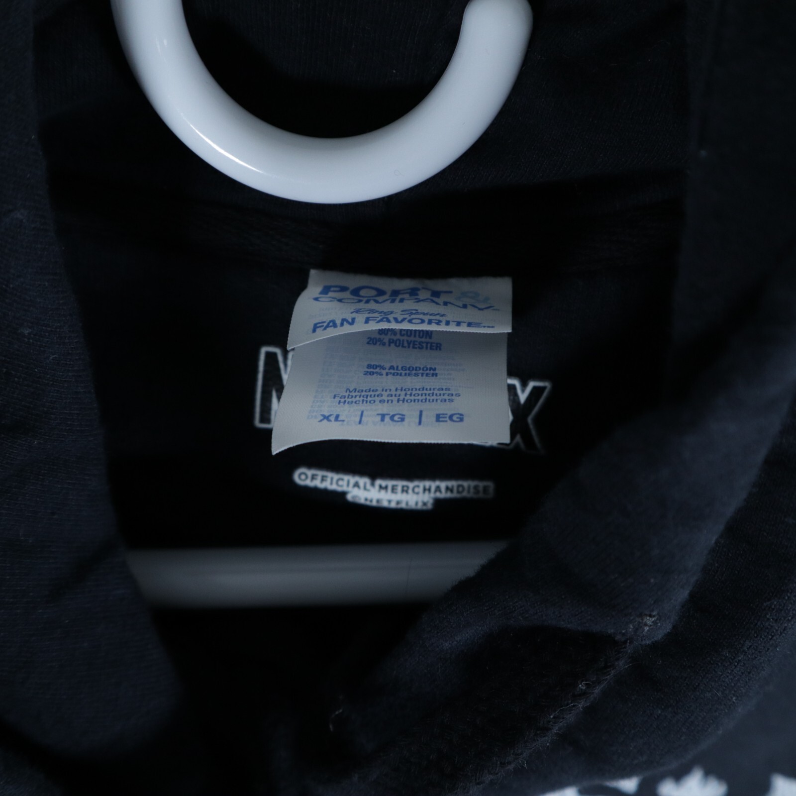 HellFire Club Stranger Things Hoodie Sweatshirt Mens XL Black Pullover Netflix Measurements: Pit to Pit (Across the Chest): 24 inches Down the Back: 27 inches All items come from a smoke free home. If you have any questions please ask and I will get back to you immediately. Thank for looking and please check out my other listings.
