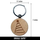 Striped Birthday Hat Engraved Wood Round Keychain Tag Charm