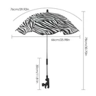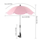 Bullet Points: Angle Modification: The umbrella can be easily bent 360 degrees to fit your child's angle, providing 360 shade and protection from the sun. The umbrella's structure is supported by 8 springs that make it flexible and sturdy. Convenient Mounting: This toddler umbrella stroller parasol can fit on most carts and beach chairs with a clip-on function. The clips have a rubber coating on the inside that prevents scratches and scuffs on the chair handle. Long Serving Life: This toddler umbrella stroller parasol has a UPF50 and UV protection coating, a silver glue fabric that is waterproof and tear-resistant, and a glass fiber umbrella frame that is strong and durable. It can protect children's skin and eyes from the sun and rain. Multi Applications: This toddler umbrella stroller parasol can fit on strollers, bicycles, wheelchairs, trolleys, fishing chairs, beach umbrellas, and more. You can take it with you for different outdoor activities and enjoy the comfort and safety it provides. Convenient Carrying: This toddler umbrella stroller parasol is lightweight and easy to transport. It is simple to clip it to the desired position on the stroller. When not in use, simply fold it into a small carrying umbrella and store it in your car or bag. The Toddler Stroller Parasol is an excellent option for outdoor activities. It can provide children with 360° sun protection. The inside of the clip has a rubber coating to prevent scratching the chair. The umbrella can also shield the skin and eyes of children from harmful UV rays. The umbrella folds easily for storage and transportation. Specification: Material: silver glue waterproof fabric + glass fiber umbrella frame + alloy Color: sky blue, scarlet, fruit green, orange, purple, rose red, , royal blue, black, print Size: about open diameter 66cm/26.0in, height 78cm/30.7in, radian 76cm/30.0in, clip length 30cm/11.8in, storage length 35.5cm/14.0 Packing List: 1*Toddler Stroller Parasol 1*Clip