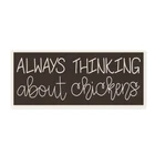 Proudly made in the USA, all of All of our wall plaques start off as high quality lithograph prints that are then mounted on durable 0.5 inch thick MDF wood. Each piece is hand finished and comes with a fresh layer of foil on the sides to give it a crisp clean look. It arrives ready to hang with no installation required, and comes with sturdy clear corners to keep it from damaging in transit.Features:Wall Art is Ready to Hang - No Installation or Hardware Needed. For Easy Set Up Lean or Layer Artwork on Shelf or Against Wall.All of our wall plaques start off as high quality lithograph prints that are then mounted on durable 0.5 inch thick MDF wood. Each piece is hand finished and comes with a fresh layer of foil on the sides to give it a crisp clean look. Made In USA.Artwork Ideal for any Free Shipping Over $49.99* Details Stupell Always Thinking About Chickens Phrase Minimal Farm Typography Wood Wall Product Description: Proudly made in the USA, all of All of our wall plaques start off as high quality lithograph prints that are then mounted on durable 0.5 inch thick MDF wood. Each piece is hand finished and comes with a fresh layer of foil on the sides to give it a crisp clean look. It arrives ready to hang with no installation required, and comes with sturdy clear corners to keep it from damaging in transit. Features: Wall Art is Ready to Hang - No Installation or Hardware Needed. For Easy Set Up Lean or Layer Artwork on Shelf or Against Wall. All of our wall plaques start off as high quality lithograph prints that are then mounted on durable 0.5 inch thick MDF wood. Each piece is hand finished and comes with a fresh layer of foil on the sides to give it a crisp clean look. Made In USA. Artwork Ideal for any Living Room, Den, Entryway, Bedroom, Office, Kitchen or Bathroom. Design by Stephanie Dicks
