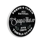Proudly made in the USA, all of our wall plaques start off as high quality lithograph prints that are then mounted on durable 0.5 inch thick MDF wood. Each piece is hand finished and comes with a fresh layer of white foil on the sides to give it a crisp clean look. Art arrives ready to hang with no installation required.Features:Add a unique touch to any home with our Circular Shaped Wall Art. All of our wall plaques start off as high quality lithograph prints that are then mounted on durable 0.5 inch thick MDF wood. Each piece is hand finished and comes with a fresh layer of foil on the sides to give it a crisp clean look. Made In USA.Wall Art is Ready to Hang - No Installation or Hardware Needed. For Easy Set Up Use A Picture Stand to Lean or Layer Artwork on Shelf or Against Free Shipping Over $49.99* Details Stupell Fresh & Clean Bathroom Sign Vintage Soap and Water, 12 x 12, Design By Product Description: Proudly made in the USA, all of our wall plaques start off as high quality lithograph prints that are then mounted on durable 0.5 inch thick MDF wood. Each piece is hand finished and comes with a fresh layer of white foil on the sides to give it a crisp clean look. Art arrives ready to hang with no installation required. Features: Add a unique touch to any home with our Circular Shaped Wall Art. All of our wall plaques start off as high quality lithograph prints that are then mounted on durable 0.5 inch thick MDF wood. Each piece is hand finished and comes with a fresh layer of foil on the sides to give it a crisp clean look. Made In USA. Wall Art is Ready to Hang - No Installation or Hardware Needed. For Easy Set Up Use A Picture Stand to Lean or Layer Artwork on Shelf or Against Wall. Artwork Ideal for any Living Room, Den, Entryway, Bedroom, Office, Kitchen or Bathroom. Design by Lil' Rue