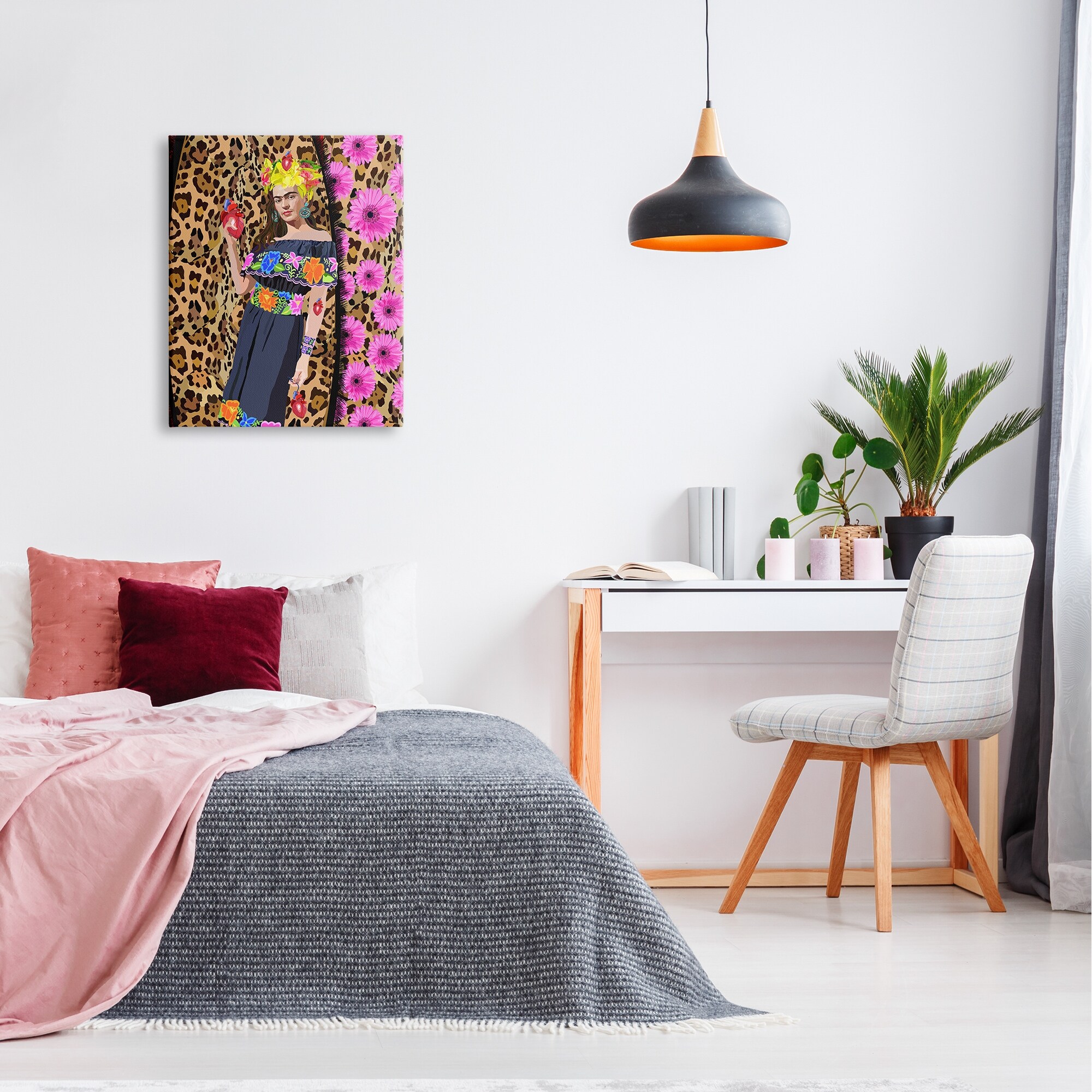 Proudly made in the USA, Our stretched canvas is created with the highest standards. We use only the highest quality inks and canvas on our in house Mimaki printers, and then hand cut and stretch each piece over a 1.5 inch thick wooden frame for hanging. The art comes ready to hang with no installation required.Features:Wall Art is Ready to Hang - No Installation or Hardware Needed. For Easy Set Up Lean or Layer Artwork on Shelf or Against Wall.Our stretched canvas is created with the highest standards. We use only the highest quality inks and canvas on our in house Mimaki printers, and then hand cut and stretch each piece over a 1.5 inch thick wooden frame for hanging. Made In USA.Artwork Ideal for any Living Room, Den, Entryway, Bedroom, Office, Kitchen or Bathroom.Design by Lynnda Rakos Free Shipping Over $49.99* Details Stupell Glamorous Frida Standing Leopard Pattern Bold Floral Canvas Wall Art Product Description: Proudly made in the USA, Our stretched canvas is created with the highest standards. We use only the highest quality inks and canvas on our in house Mimaki printers, and then hand cut and stretch each piece over a 1.5 inch thick wooden frame for hanging. The art comes ready to hang with no installation required. Features: Wall Art is Ready to Hang - No Installation or Hardware Needed. For Easy Set Up Lean or Layer Artwork on Shelf or Against Wall. Our stretched canvas is created with the highest standards. We use only the highest quality inks and canvas on our in house Mimaki printers, and then hand cut and stretch each piece over a 1.5 inch thick wooden frame for hanging. Made In USA. Artwork Ideal for any Living Room, Den, Entryway, Bedroom, Office, Kitchen or Bathroom. Design by Lynnda Rakos