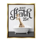 Floating Frame Sizes Include Standard: 17 x 1.7 x 21 Oversized: 25 x 1.7 x 31 Wall Art is Ready to Hang with Hardware Free Hanging. No installation required. For Easy Set Up Lean or Layer Artwork on Shelf or Against Wall. Our elevated 1.7" Thick Floating Frame is the perfect complement to our canvas style Wall Art. We use only the highest quality inks in house with industry leading printing solutions. Canvas is hand stretched over a durable wood foundation and then mounted securly into a Modern Box Frame. Made in the USA. Artwork Relates To: Animal, Bathing, Bathroom, Hot Bath, Phrase, Giraffe Design by Lettered and Lined