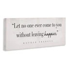 Proudly made in the USA, our stretched canvas is created with only the highest standards. We print with high quality inks and canvas, and then hand cut and stretch it over a 1.5 inch thick wooden frame. The art comes ready to hang with no installation required.Features:Wall Art is Ready to Hang - No Installation or Hardware Needed. For Easy Set Up Lean or Layer Artwork on Shelf or Against Wall.Our stretched canvas is created with the highest standards. We use only the highest quality inks and canvas on our in house Mimaki printers, and then hand cut and stretch each piece over a 1.5 inch thick wooden frame for hanging. Made In USA.Artwork Ideal for any Living Room, Den, Entryway, Bedroom, Office, Kitchen or Bathroom.Design by Daphne Polselli Free Shipping Over $49.99* Details Stupell Without Leaving Happier Phrase Mother Theresa Quote Canvas Wall Art Product Description: Proudly made in the USA, our stretched canvas is created with only the highest standards. We print with high quality inks and canvas, and then hand cut and stretch it over a 1.5 inch thick wooden frame. The art comes ready to hang with no installation required. Features: Wall Art is Ready to Hang - No Installation or Hardware Needed. For Easy Set Up Lean or Layer Artwork on Shelf or Against Wall. Our stretched canvas is created with the highest standards. We use only the highest quality inks and canvas on our in house Mimaki printers, and then hand cut and stretch each piece over a 1.5 inch thick wooden frame for hanging. Made In USA. Artwork Ideal for any Living Room, Den, Entryway, Bedroom, Office, Kitchen or Bathroom. Design by Daphne Polselli