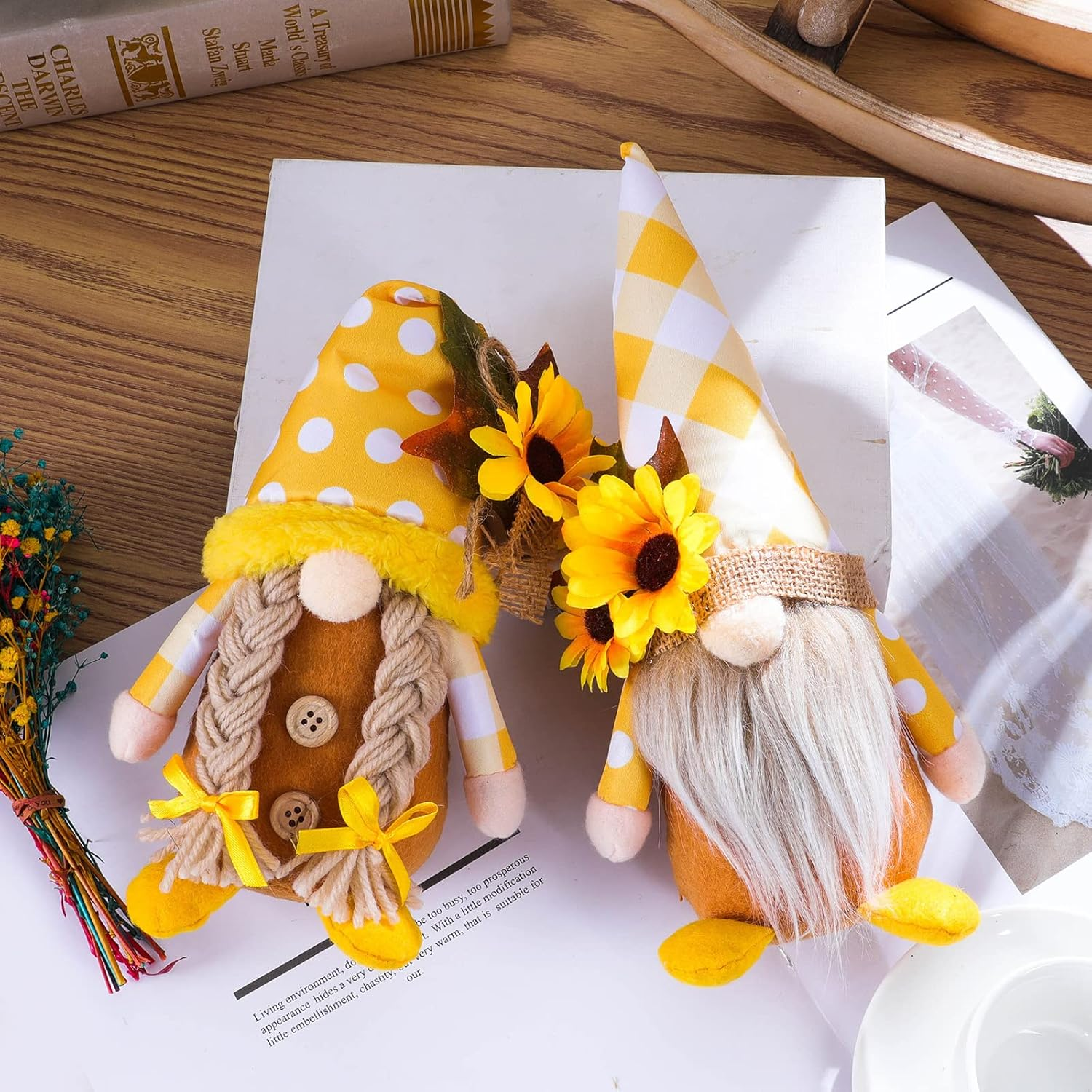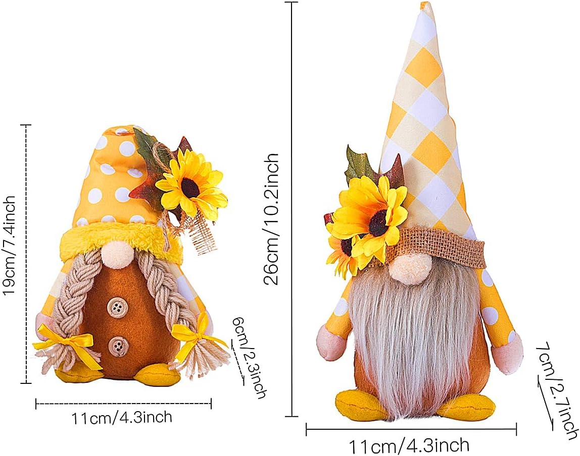 ❖ Sunflower Gnomes - Sunflower represents facing the sun is hope, dream is the best faith, unstoppable footsteps chasing dreams. Each is unique art for decorate home, garden or Spring. ❖ Spring Gnomes - Each sunflower gnome is crafted from soft felt, their hats can be bent to your liking. Long beard is made from fiber fur, a man and a woman, absolutely charming and will win over any Gnome lover’s heart. ❖ Gnomes for Spring Decor - Great little tomte! They are fun, adorable and quirky, put them on the table, desk, fireplace, bookshelf, garden and more. Perfect gifts for Birthday, Fall Day, Spring Day, Summer Day, Halloween, Thanksgiving and Christmas...various themes party decoration. ❖ Tips - Since our products are packaged together, the dolls may be deformed or wrinkled due to extrusion, but please be do n’t worry that due to the main material of the doll is cotton, which is soft and adjustable, and it can be restored manually. ❖ Note - If you have any questions or have a wonderful idea after receiving the item, you are always welcomed to contact us by e-mail, our customer service staff will answer you within 24 hours. Product description Rainbow Unicorn Gnomes Sunflower Gnomes Bunny Gnomes Baby Bottle and Nipple Gnomes Daisy Ladybug Gnome Spring Gnome Animal Gnomes