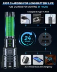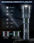 【Brightest Flashlight for Outdoor Enthusiasts】 The super bright flashlight produces a up to 2500000 lumens brightness, focused beam can lights up the whole room even the darkest corners (over a beam distance of 8000ft/2000m) . This is the perfect powerful flashlight for everyday use. It's great for camping, hiking, or simply navigating around work at night. 【Adjustable Focus & 6 Light Modes】This high lumen flashlight has 1 brightness adjustable button for High-Medium-Low lighting mode and 1 function button for Super Strong-Strobe-SOS lighting mode. As you need, you can stretch the head of the camping flashlight to adjust the focus. The Spotlight for Long-distance Observation and the Floodlight for large-area illumination. Grentay flashlights can emit a very bright light that penetrates darkness effectively and illuminates long distances. 【USB Charging Indicator & Long-lasting Battery】Tactical flashlights built-in USB charging port allows charging from power banks, wall outlets and laptops for convenient indoor and outdoor charging. The switch button Lights Up Red indicate the need for Charging, and Green to indicate a Full Battery. The rechargeable flashlights battery provides lighting up to 20 hours of brightness (low mode). 【Durabe & Ip67 Waterproof】This powerful flashlight is made of high quality space aluminum alloy and is tested for high drop and fall protection. The build quality is strong enough to withstand harsh usage environments and is suitable for extreme weather such as rain, snow and sandstorms. Meanwhile, the Ip67 rated waterproof design gives you peace of mind when exploring the outdoors. 【Value LED Flashlight & 2 Years Customer Service】You will get 1*Grentay Super Bright Flashlight, 1*5000mAh Powerful Rechargeable Battery,1*Type-C Charging Cable, 1*Lanyard and 1*Instruction Manual, 1*Packing Box. We provide 7/24 hours customer service. If you have any questions about the brightest flashlight, please feel free to contact us. We will be happy to help you solve the problem. We provide 2 years after-sales service and unconditional return flashlight policy, so that you can use it with confidence. Product Description 1 Input & Output 2 High Power & Long Life 1 Zoom IN & OUT 2 Independent SOS Mode 3 XHP160 LED Beam 1 Decent Gift Idea 2 Waterproof 3 Good Heat Dissipation 4 Impact Resistant How is the brightness of the super bright flashlight? The brightness of this powerful flashlight is 2500000 lumens, even brighter than a car headlight. Please be careful not to shine directly on your eyes, because it is very bright and you will not be able to open your eyes. Does this rechargeable bright flashlight come with rechargeable batteries? Yes, this high powered flashlight comes with a 5000mAh rechargeable battery in the package. Does it hurt the led flashlight if i forget and charging it all night ? It won't hurt if the handheld flashlight is charged all night, It has overcharge protection, the flashlight will stop charging when it get full charged Can I use while it is charging? Yes.