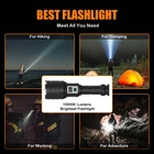 Note: 1.Please don't point the high power flashlight to eyes directly, or cause irreparable harm to the eye's retina. 2.To prolong the lifespan of the battery, Charge fully for the first time use. [INCREDIBLE BRIGHT FLASHLIGHTS & UPGRADED LED CHIP]: rechargeable flashlights with high lumens are equipped with the latest technology chips, and can emit up max to 200000 lumens, which is 30 times brighter than a regular flashlight. It can easily illuminate a 2800-square-foot room or focus on objects up to 3000 feet away. [POWERFUL RECHARGEABLE FLASHLIGHTS HIGH LUMENS & 5000MAH POWER OUTPUT]: Conveniently powered for hours with a 5000mAh rechargeable battery, also has a power output function, and can use as a mobile power supply to charge your mobile phone when camping, exploring or working outdoors. [5 MODES LED FLASHLIGHT & ZOOMABLE FLASH LIGHT]: High-lumen flashlight with 5 modes: High, Medium, low, strobe, and SOS. With the telescopic zoom function, Zoom out or zoom in the flashlight head to switch to the spotlight mode and the floodlight mode. Spotlight mode is suitable for long-range observation, and the floodlight mode is suitable for large-area illumination, which is very practical. [IPX6 WATERPROOF FLASHLIGHTS & STRONG ALUMINUM ALLOY]: tactical brightest flashlight is made of aerospace-grade aluminum alloy, protecting your heavy-duty flashlights from scratches, corrosion, rust, and breaking. [WORRY-FREE AFTER-SALES SEVICES]: Super Bright LED flashlight has 365-days quality assurance and 60-day money-back, add it to your cart and you will love it.