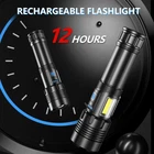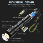 【SUPER BRIGHT LED FLASHLIGHT】: U1670 new flashlights high lumens is equipped with an upgraded XHP70.2 chip, which has a powerful output of 990,000 lumens, Instantly making the night you face into daylight. It projects an ultra-wide beam that illuminate areas up to 2160 square ft, easily lighting up your entire backyard. It can even illuminate objects 3,937 ft away. You can also adjust the focus range from spotlight to floodlight by stretching the head of the rechargeable flashlights. 【Upgraded 7 LIGHTING MODES FLASH LIGHT】: Unlike the common 5 modes flashlight rechargeable in the market, U1670 can be used for more occasions. Why? As the bright flashlight is equipped with a main led light and a COB side light, offering 2 lighting choices. The main led light includes 3 modes: High, Medium, Strobe. The COB side light has 4 modes: High, Medium, Red Light, Red Strobe. How to switch to COB light? Very easy: just press the button twice quickly no matter the main light is on or off. 【USB RECHARGEABLE & POWER INDICATOR】: The linterna recargable comes with rechargeable battery that provides up to 12 hours of runtime, with built-in short-circuit protection to extend battery life to 50,000 hours. The flashlights high lumens rechargeable also features a USB output for charging other electronic devices in an emergency. The power indicator also monitors the remaining power in real time, so you don't have to worry about suddenly running out of power. 【PREMIUM QUALITY MATERIAL & IP67 WATERPROOF】: Flash lights battery powered is made of high quality aircraft-grade alloy with an anodised anti-abrasive coating to ensure its durability and extreme impact resistance. It even can withstand being run over by a full-size truck, and still remain intact. With multiple waterproof and sealing treatments, dustproof and waterproof performance can reach the IP67 level. It can easily cope with extremely harsh environments such as heavy rains and sandstorms. 【2 PACK GREAT VALUE FLASHLIGHT KIT】:You will get:2* Powerful Flashlights, 2* Rechargeable Battery, 6* AAA Battery(with 2* White Battery Tubes, 2* AAA Battery Holder), 2* USB-C Cable, 1* Instruction manual, the Value Pack can meet your different needs. Moreover, also focuses on product quality, each handheld flashlight is subject to strict quality inspection. If you meet any problem, please feel free to contact our customer support team, we will provide you with the best solution.