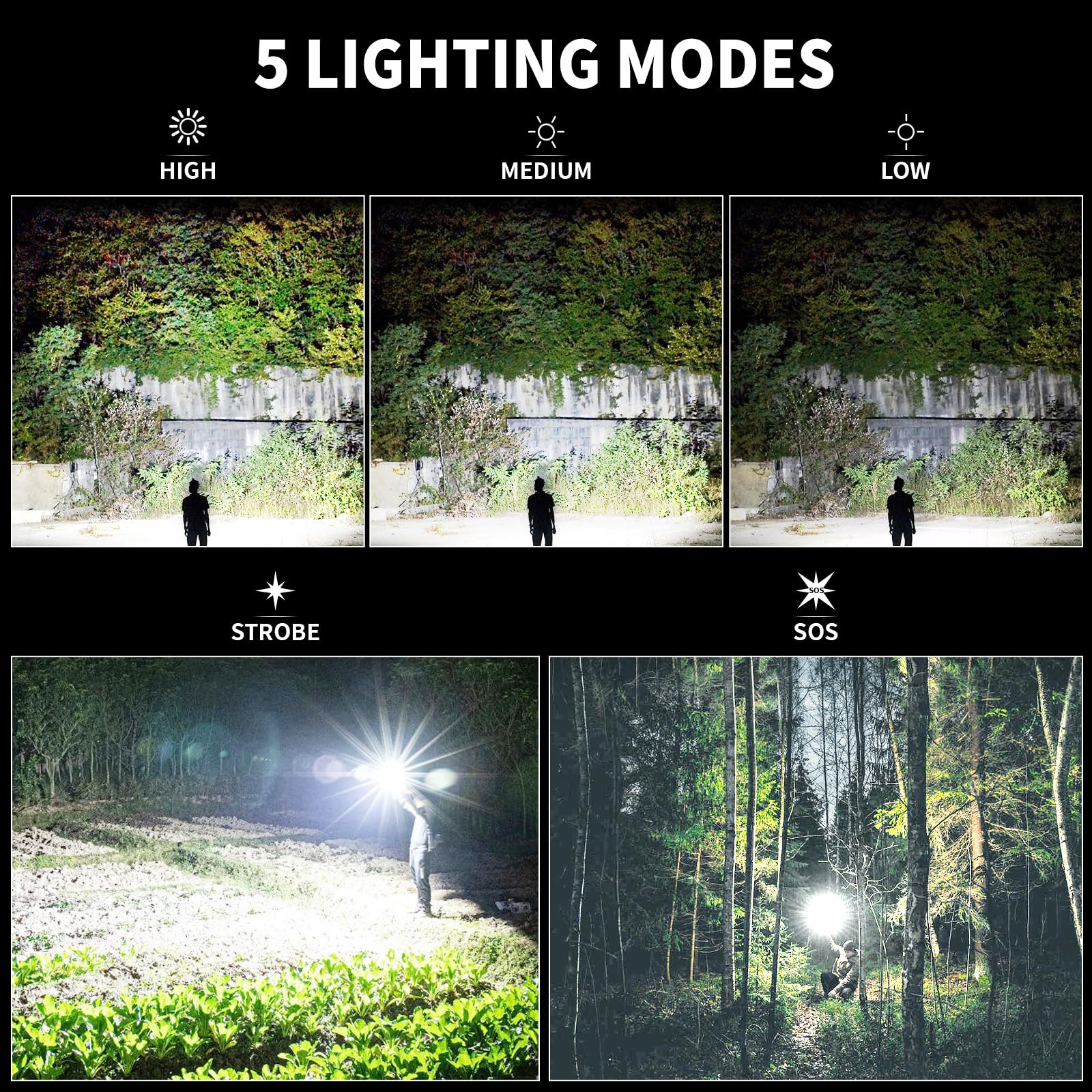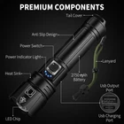 [ 990,000 Lumens Flashlight ] Our bright flashlight can bring you unparalleled 990,000 lumens brightness. Even from a distance of 3280 feet, the light from our LED flashlight will make everything in front of you bright and clear, providing reliable illumination to ensure visibility [ 5 Lighting Modes & Adjustable Beam ] With adjustable brightness settings (High | Medium | Low | Strobe | SOS) and versatile beam options, our flashlights high lumens offer customizable lighting for any situation. Whether you need a wide beam for camping or a narrow beam for intricate tasks, our flash light have you covered [3H Fast Charging & USB Output] You can charge the rechargeable flashlights directly via the included USB cable, and it will be fully charged in 3-5 hours. In addition, the high powered flashlight has a built-in output port that can be used as a power bank to charge mobile phone or other devices [12H Running& Power Display] This led flashlights rechargeable comes with a 2750ɱAh bāttery, enough to support 8-12 hours of lighting. And the tāctical flashlights equips with 4 indicator lights to display the bāttery power remain [ Sturdy & IPX6 Waterproof ] Made from aircraft-grade aluminum alloy, the handheld flashlights is built to withstand tough conditions. And comes with a rubber ring that ensures IPX6 water resistance, so you don't have to worry about using it in the rain or near water [Compact Size & Widely Uses ] At 6.5 x 1.6 x 1.2 inches, they're compact enough to fit in your pocket or backpack, making them the perfect daily companion. Whether you're camping, hiking, fishing,or just need a home flashlight, these powerful flashlights will be your reliable partner [ Buy with Confidence ] We're here to help you anytime. If you experience any issues with our eɱergency flashlights, don't hesitate to contact us. We offer a 24-hour solution and 2-year wa-rranty service to ensure your complete satisfaction with your purchase