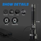 【Better & Brighter】 Hold the long and wide flashlights body in your hand and experience the comfort of holding it. Brightest flashlight can generates an ultra-high output up to 9,000,000 lumens, sweeps bright light over the length of about two football fields and reaches nearly 1093 yard/3280 feet. 【5 Modes】 High lumen flashlight with 5 modes: low brightness,medium brightness,high brightness,strode brightness and sos function, you can switch at will, adapt to different environments of lighting. 【Rechargeable Flashlight & Power Display】 Conveniently powered for rechargeable Βattery. Built in Mrico input port, allows you charging the flashlight conveniently. In addition, rechargeable flashlight have a power display function, so that you can see the power at a glance. 【IP65 Waterproof Material】 Non-slip and IP65 waterproof led flashlight are suitable for outdoor environment and adverse weather conditions. Made of aluminum alloy, protect your heavy duty flashlights from scratched, corrosion, rust, and break. 【Worry-Free After-Sales Sevices】 Try it and you will love it. If you are not satisfied with our product, please feel free to contact our excellent customer support team. Package Contains: 1 x Flashlight 2 x 26650 Battery 1 x USB Cable