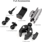 Store New Arrivals Add to Favorite View Feedback Contact Super Camera Clamp Mount Gopro Insta360 Accessories, Dual 360°Ball Head Magic Arm Adapters with 1/4''-20 Screw, Universal Phone Holder Mount for Bike Handlebar Fence Desk Tree Pole Tripod Description Mounting Type Tube, Rod, Table Color Black Material Type Aluminum Compatible Devices Aciton Camera, Smartphone, Micphone, Fill Light, LED Light, Camera Monitor Compatible with Vehicle Type Motorcycle Shape irregular shape Additional Features Rotatable, Adjustable Compatible Phone Models function(f) {var _np=(window.P._namespace("DetailPageProductOverviewTemplatesJava"));if(_np.guardFatal){_np.guardFatal(f)(_np);}else{f(_np);}}(function(P) { P.when('A').execute(function(A){ A.on('a:truncate:po-attribute-truncate-3:updated', function(data) { var isTruncated = !data.truncateInstance.getIfTextFits(); var seeMoreElement = document.getElementById('po-attribute-see-more-id-3'); if(seeMoreElement) { seeMoreElement.style.display = isTruncated ? '' : 'none'; } }) }); })); Gopro Hero 12, Hero 11, Hero 10, Hero 9, Hero 8, Hero 7, Hero 6, Hero 5, Hero 4, Hero 3, Hero 3+, Hero session, Gopro max, Gopro fusion, DJI OSMO Action 1 2 3 4 Pocket 3, Insta360, Canon, Nikon, Sony, Olympus Cameras, Android Smartphones,Samsung, iPhone, DSLR, Devices with 1/4 nuts See more Advanced Design: Our bracket is well crafted under precise CNC process. At the top you can connect with a 360°ballhead mount for easy direction. 1/4-20 Mount can be connected with your digital camera Canon Nikon Sony or phone holder(included) ,while 3-fingers mount can be connected with your Gopro or other action cameras. In the middle it is high quality aluminum alloy magic arm with a knob to be tightened. At the bottom there is a tube clamp with a locking knob as well. There is non-slip rubber pads inside for protection. Various viewing angle: We provide durable double ballhead mounts for your different demandings. You can use the ballhead mount to swivel 360° rotation. Make you take better photos and videos. Extra Large Opening Diameter: The clamp range is 0.8-2inch/20-50mm. You can lock it on tripod/pole/tube/desk by tightening the clamp with the locking knob. The extension width of our phone clip is 2-3.3inch/50-83mm. Multi-scene use/Widely Use: It is a great clamp mount for video making-lovers. Compatible with action cameras Gopro 12 11 10 9 8 7 6 5 4 3 Fusion Max, Insta360, AKASO, SJCAM, DJI OSMO Action 1 2 3 4 with a 3-finger mount. With a phone clip, it is convenient to use your smartphone to record beautiful scenery on the wayYou can fix on a tree, pole, shoulder rig, microphone, bicycle handle, speedometer, scooter handlebar, motorcycle as per your need. Full Accessoires:1x clamp mount, 1x tube clamp, 1x 3-fingers ballhead adapter, 1x 1/4'' ballhead mount, 1x phone holder, 1x thumbscrew Product Description 1 3-fingers Mount 2 1/4''-20 Screw 3 Phone Holder Tube Clamp The clamp range is 0.8-2inch/20-50mm. There is non-slip rubber pads inside. The video showcases the product in use. The video guides you through product setup. The video compares multiple products. The video shows the product being unpacked. Ballhead Mount Dual 360°ballhead mounts includes 1/4-20 Mount&3-fingers mount that can connect to your various devices. The video showcases the product in use. The video guides you through product setup. The video compares multiple products. The video shows the product being unpacked. Magic Arm Aluminum alloy extension magic arm with a knob to be tightened. The video showcases the product in use. The video guides you through product setup. The video compares multiple products. The video shows the product being unpacked. Where can this clamp be used? Compatible with both 1/4’’ screw and camera rods with dual ball head 360 degree rotation. Can I clip it onto my skateboard? This clamp mount can be fixed on any device with handlebar diameter between 0.8-2inch/20-50mm. What is the range of our phone clip that can hold a smartphone? It fits for 2 to 3.3'' Universal Phones. 45''Selfie Stick Explore More From GEPULY For cameras/phones Compatibility For cameras/phones Waterproof Floatability Adjustable Tripod Function For cameras/phones Compatibility For cameras/phones Waterproof Floatability Adjustable Tripod Function For cameras/phones Compatibility For cameras/phones Waterproof Floatability Adjustable Tripod Function For cameras/phones Compatibility For cameras/phones Waterproof Floatability Adjustable Tripod Function 4-in-1 Floating Tripod Float Hand Grip Pocket Handle 360°Ballhead Stick ABOUT US We offer the best prices around on high-quality products. Our E-store includes media such as books, movies, music and games while offering electronics, toys, sporting apparel, clothing, tools, general home, garden items, and more. SHIPPING We are always working hard to ensure your package arrives as soon as possible. Please understand that some factors like weather, high postal traffic, and the performance of shipping companies are outside of our control. We offer free shipping to the lower 48 states and ship within 3-5 business days of payment, usually sooner. We do not accept P.O. Boxes, APO, or AFO addresses. Please provide a physical address. Due to technical reasons - an order can't be canceled once placed. Payment We currently accept payment via eBay managed payments only. Once payment is cleared, we will dispatch your shipment within up to 5 business days. Please refer to the "Shipping" tab for more information regarding shipping speed to your destination. RETURNS We offer a 30-Day Return Policy on items that you are not completely satisfied with. You can get a refund, less 9% for shipping and restocking the item. Returns accepted ONLY with our return label, not your label or ebay label. The item must be in a new and unused condition. PAYMENT We accept PayPal. CONTACT US This page content is yet to come Please ad us to your favorite seller and visit again later Thank You CUSTOME