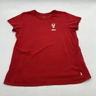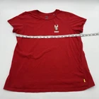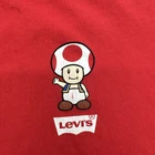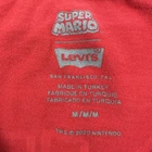 This Levi's T-Shirt for women features a classic Super Mario logo design in red, perfect for casual wear. Made from 100% cotton material, the shirt has a relaxed fit with short sleeves and a crew neck neckline, making it suitable for all seasons. The casual sleeve style and solid pattern add to its basic yet stylish look, ideal for summer, fall, and spring. The shirt is designed with a pullover closure and is available in size M. Check pictures for flaws and measurements
